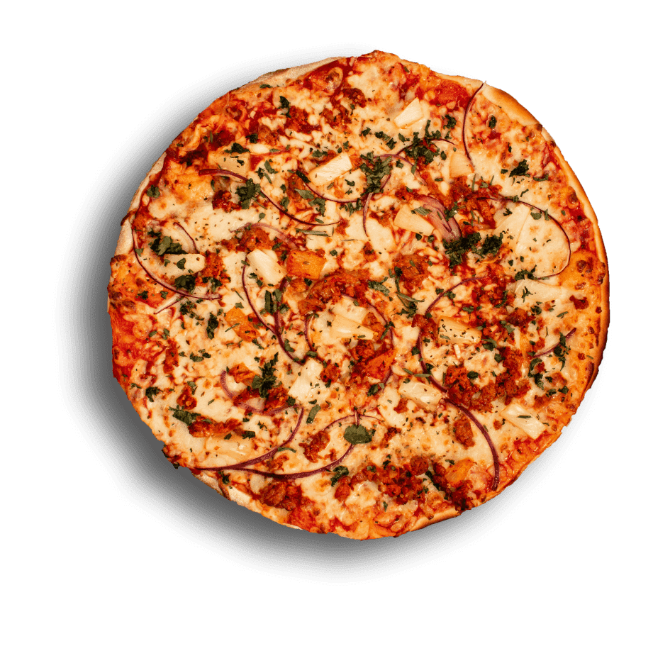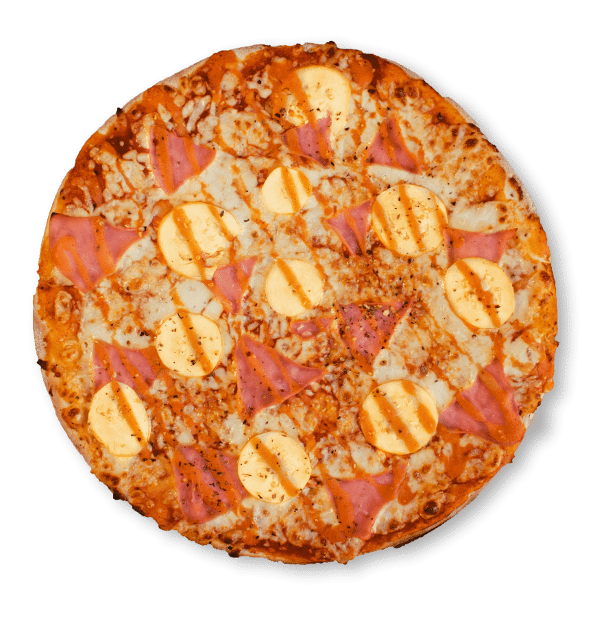 Pepperoni, tocino, piña, y pimiento